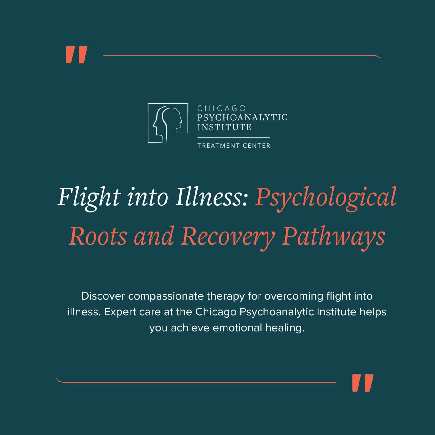 In Chicago, expert therapists and psychoanalysts at the Chicago Psychoanalytic Institute are trained to recognize and treat the underlying causes of flight into illness, helping patients move beyond avoidance and toward meaningful healing.
